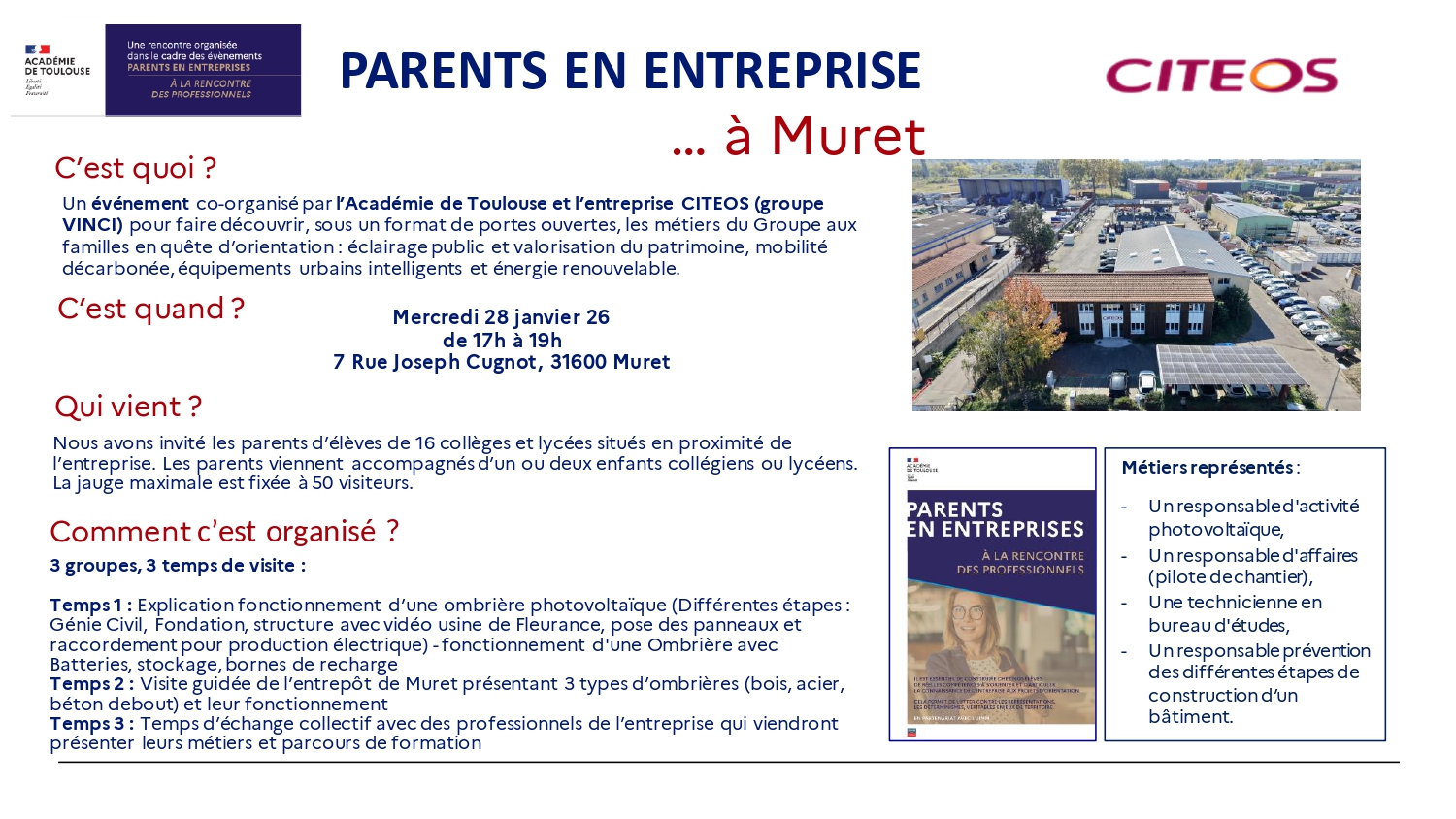 Un événement organisé par l'Académie de Toulouse et l'entreprise CITEOS pour faire découvrir, sous format de Portes ouvertes, les métiers du groupe aux familles en quête d'orientation.